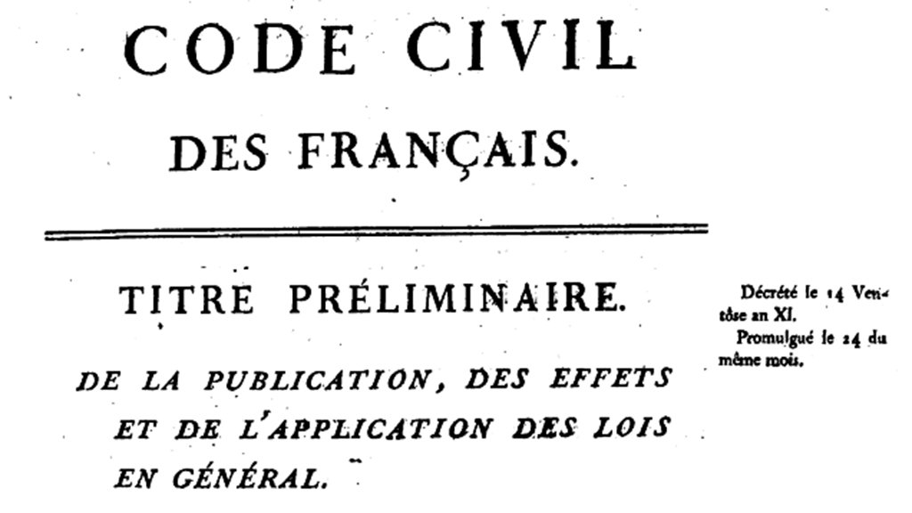 21 марта 1804 года во Франции вступил в силу Гражданский кодекс, который также называют кодексом Наполеона. Этот документ являлся компиляцией различных источников французского права — римского права, обычаев, королевских указов, а также революционного законодательства. При его составлении также широко использовались достижения юридической науки.