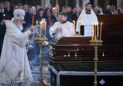 Ранее в этот день в храме Христа Спасителя состоялось отпевание Жириновского, которое провел Патриарх Московский и всея Руси Кирилл. На панихиду пришли родные и близкие политика, коллеги по партии, парламентарии и другие государственные деятели. У храма также стояло много людей с цветами, желающих проститься с Жириновским.