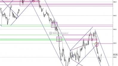 Пара USD/RUB повышается в рамках коррекции, приблизившись к верхней границе краткосрочного нисходящего канала. Закрытие часовой свечки над данным сопротивлением, скорее всего, приведет к продолжению роста с первой целью на уровне 63,5 руб.
