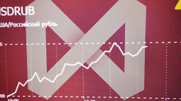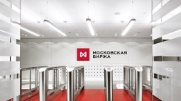 Котировки фондового рынка на экране в здании Московской биржи