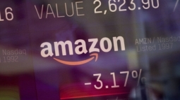 Индекс торговли компании Amazon, показанный на информационной панели биржи NASDAQ. 9 февраля 2018