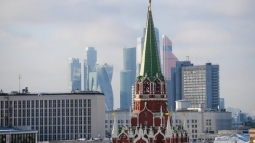 Никольская башня Московского Кремля и небоскребы Москва-сити