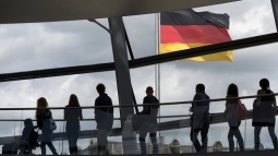 Посетители в здании рейхстага в Берлине, Германия