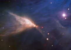 «Хаббл» сфокусировался на темном пыльном «сердце» туманности, где находится звездное скопление, в основном скрытое от глаз. Рядом расположена яркая звезда Альнитак. Хотя она не попала в кадр, именно лучи этой тройной звезды ионизируют водород в туманности.